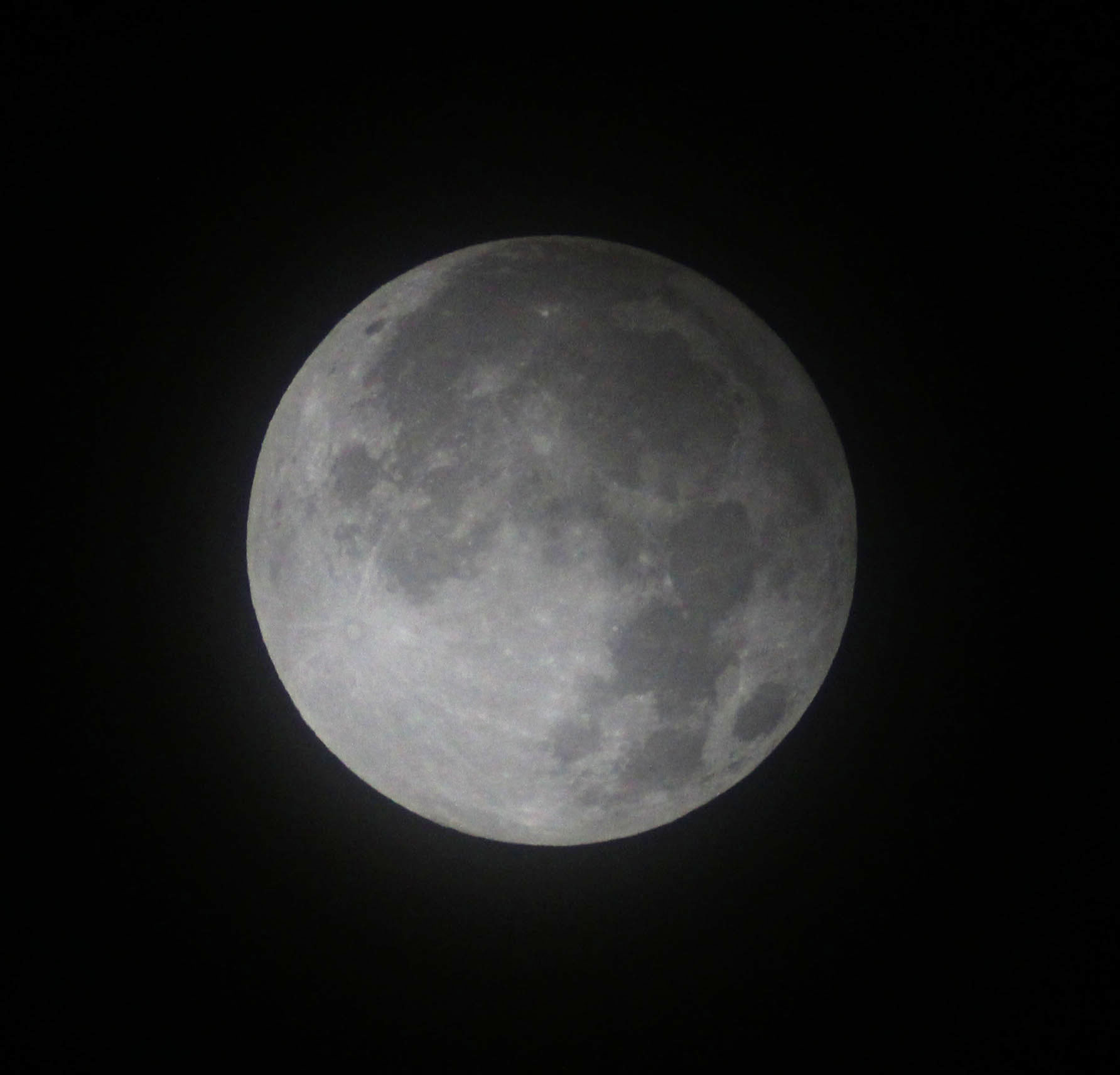 A dusky shading was clearly visible in the southern most region of the Moon to the naked-eye. Temp -4°C. A layer of altostatus cloud covered the complete sky.